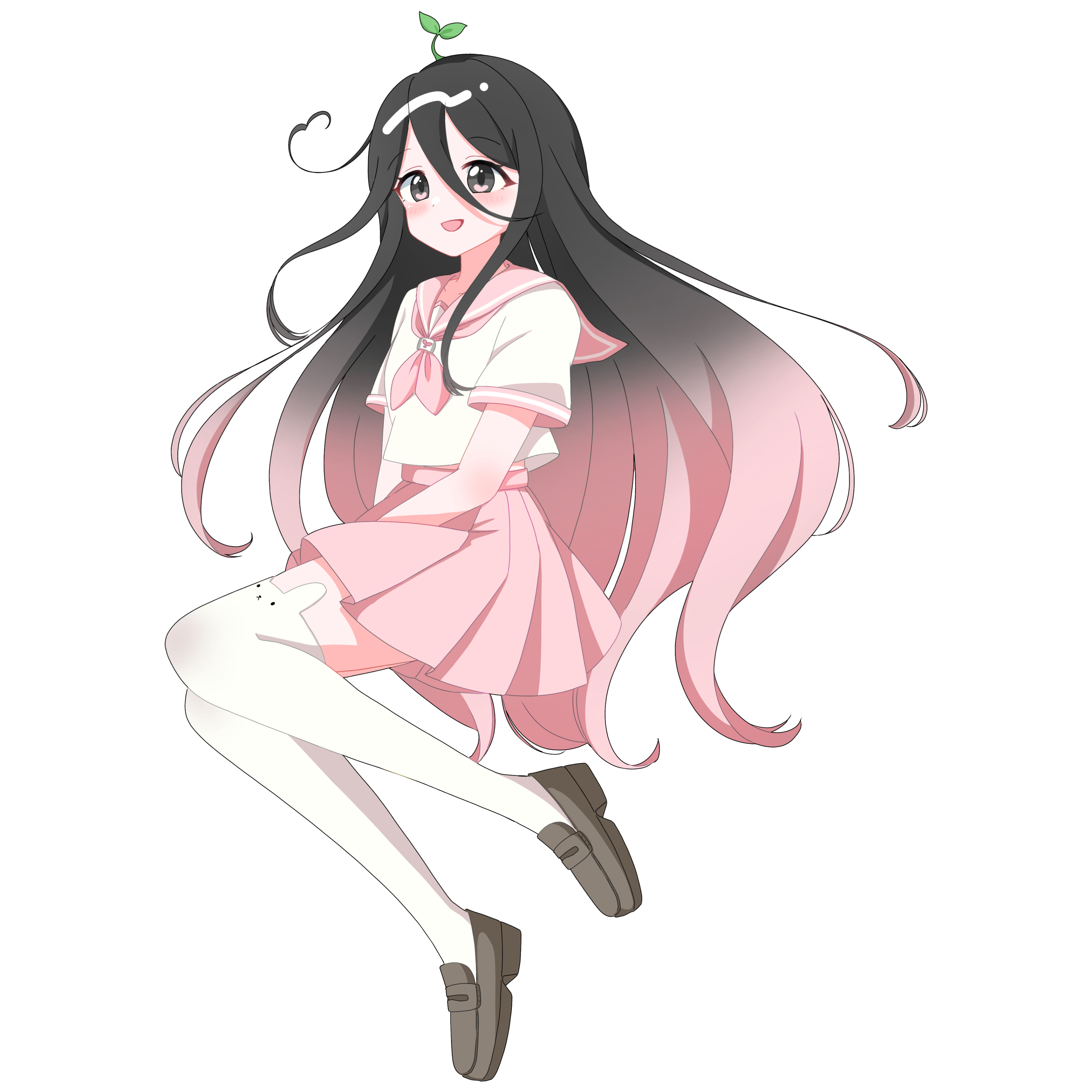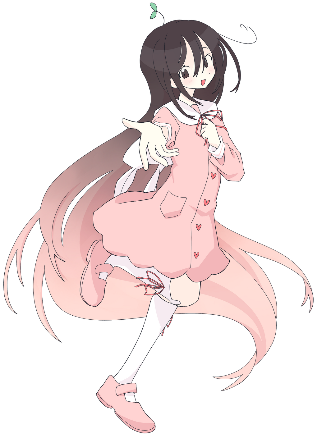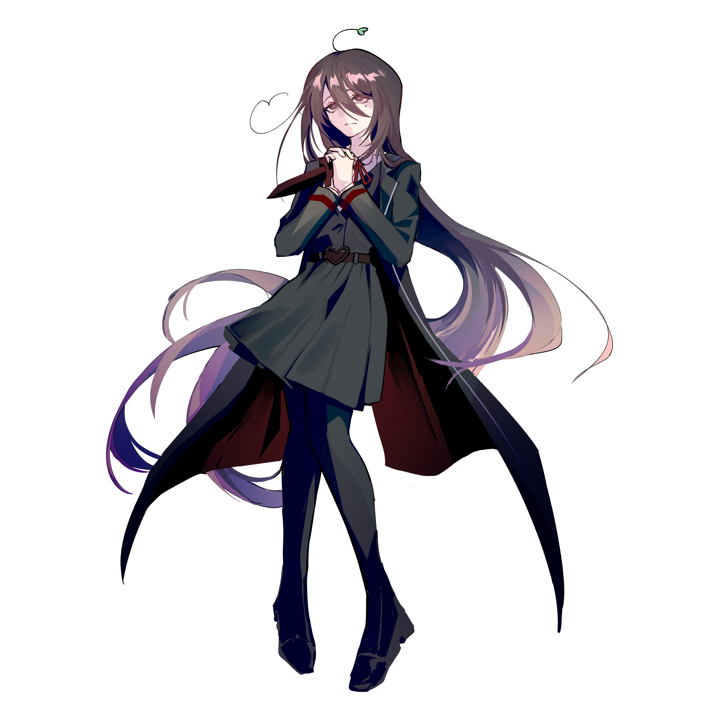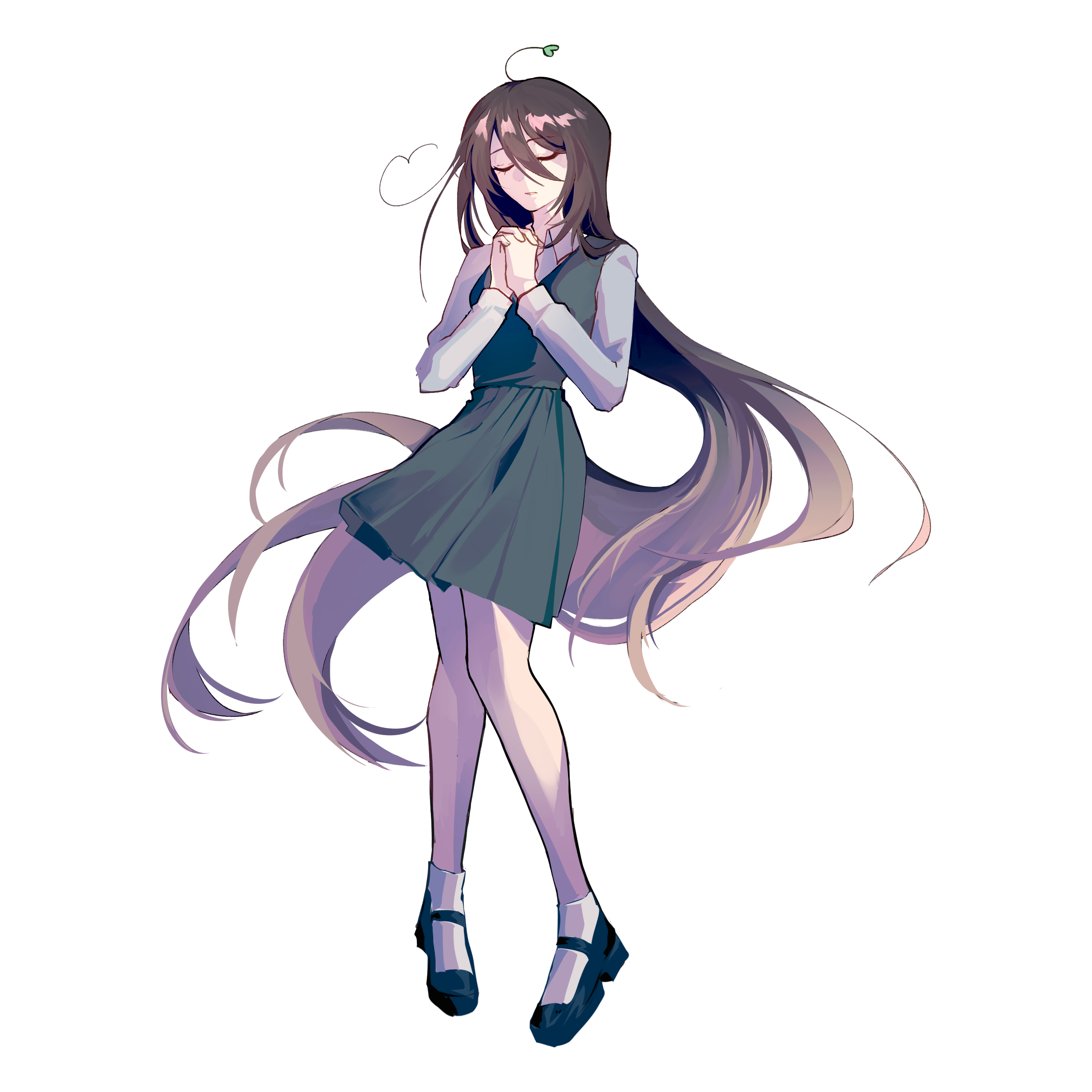 Ahoge: Has a heart shaped ahoge. This is mandatory when drawing her!